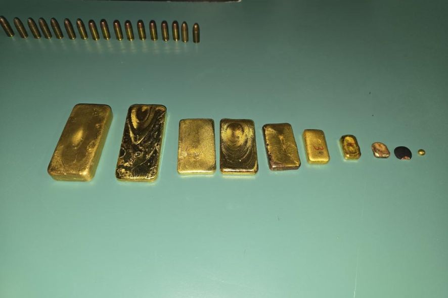 Questionados, os suspeitos inicialmente negaram que estavam na residência, o que levantou ainda mais suspeitas de algo ilícito no local. Os policiais, então, retornaram à casa, onde foi encontrada grande quantidade de ouro de diversos tamanhos e uma estrutura semelhante a uma fábrica de fundição e soldagem de barras. Também foram encontradas na residência 17 munições calibre 9 mm, que estavam na gaveta de um escritório, além de celulares e notebook.