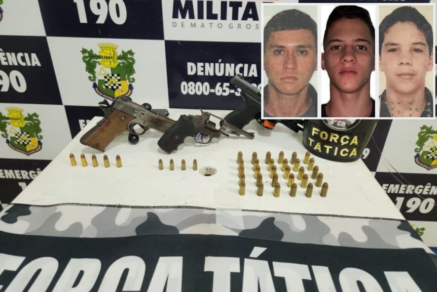 Com eles, a PM apreendeu as três armas de fogo, além de porções análoga a maconha, cocaína, armas e dinheiro.