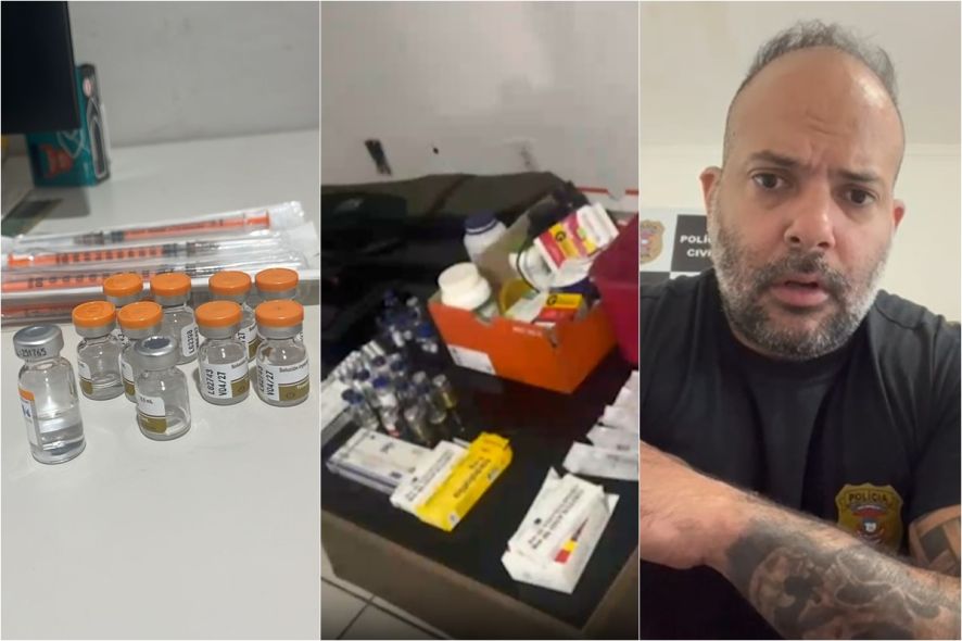 “Lá foi encontrada farta materialidade de medicamentos, também conhecidos como anabolizantes, e outros conhecidos como Mounjaro ou emagrecedores. Esses são medicamentos que devem ser prescritos por médicos e comercializados em lojas ou farmácias com a devida autorização da Agência de Vigilância Sanitária”, afirmou.