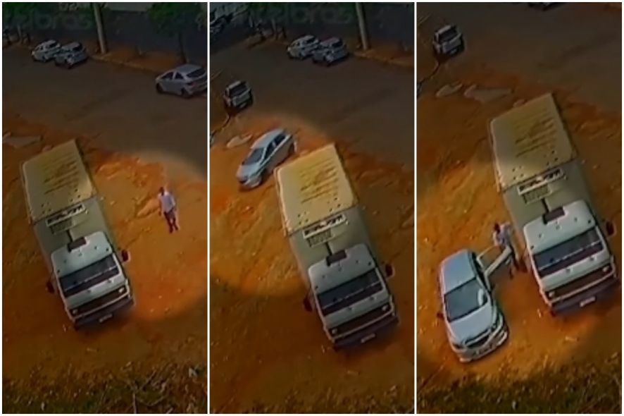 O vídeo, divulgado no Programa do Pop, da TV Cidade Verde, mostra que a dupla chega em um Chevrolet Onix e para a metros de distância do caminhão, no lado oposto da rua.