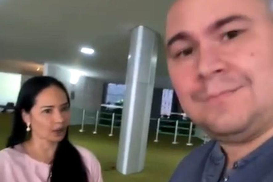 Abílio mostrava uma parte do prédio que não foi invadida e depredada durante o protesto na sede dos Três Poderes no último final de semana: “É que se você fica assistindo só na internet parece que está tudo quebrado Brasília, mas não é verdade”, diz ele nas imagens.
