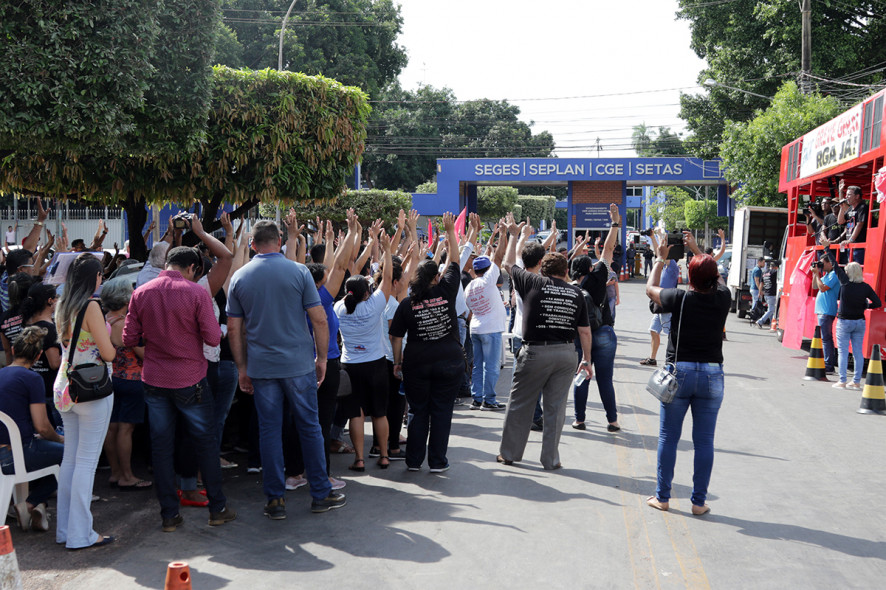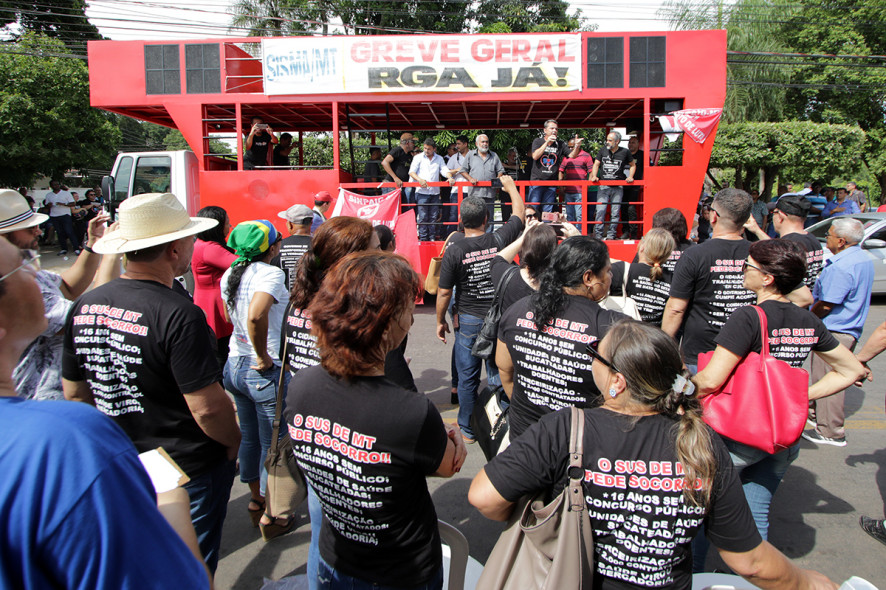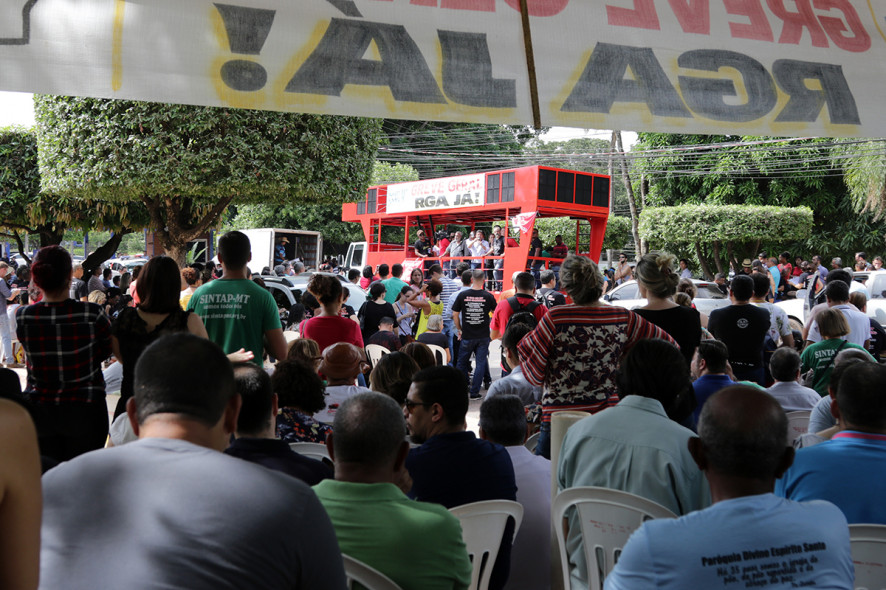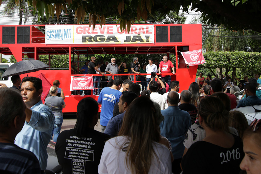 Nesta tarde, os servidores se reuniram em frente à Secretaria de Gestão, no Palácio Paiaguás, em um ato contra o não-pagamento da RGA. Já votaram pela paralisação - ainda sem data definida - o Sindicato dos Servidores Públicos da Saúde do Estado de Mato Grosso (Sisma) e o Sindicato dos Profissionais da Área Instrumental do Governo (Sinpaig). Ao todo, 30 sindicatos formam o Fórum.