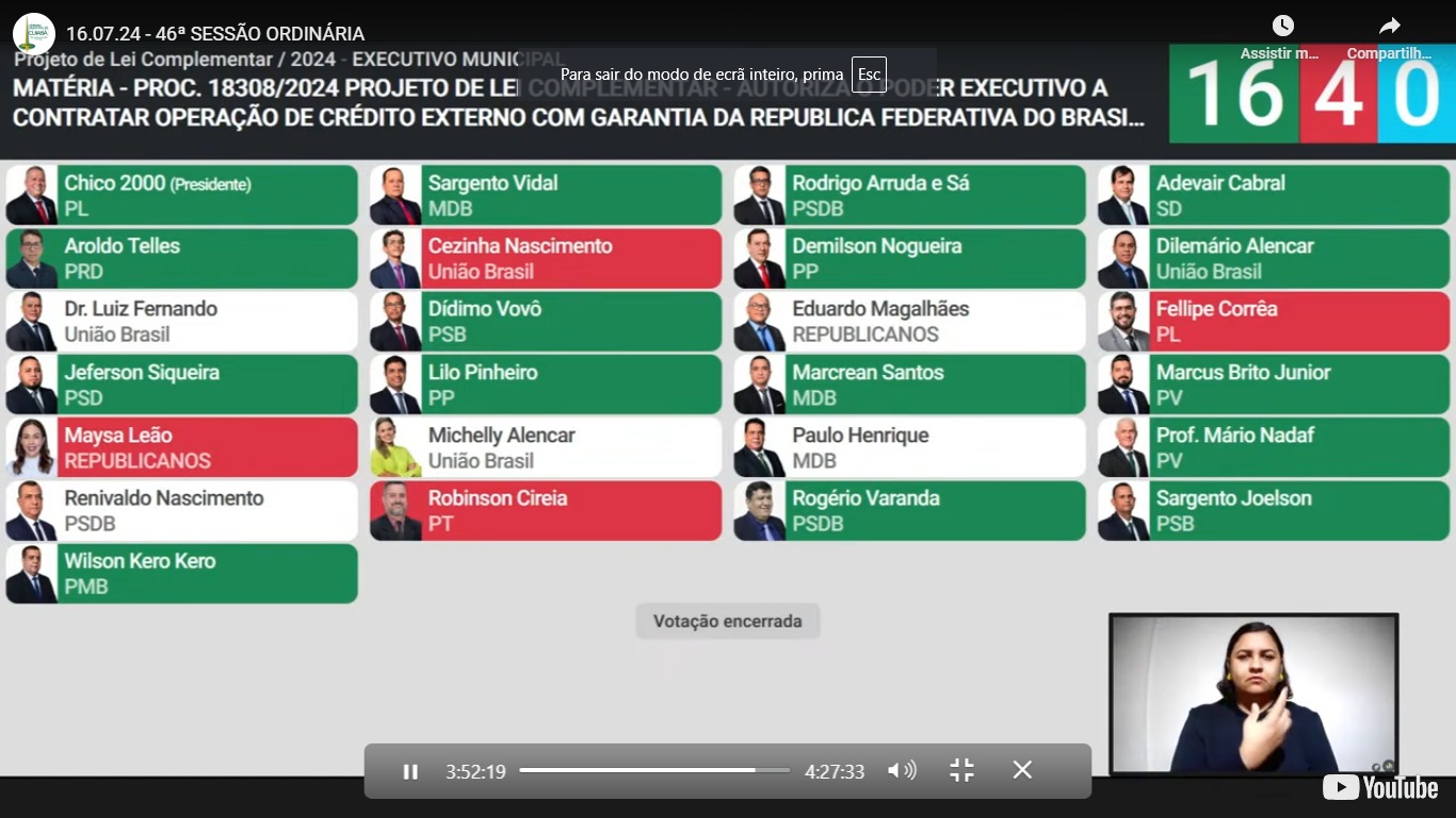 Os vereadores de oposição se manifestaram contra a aprovação alegando a quebradeira no caixa da Prefeitura sob a gestão Emanuel. O vereador Fellipe Corrêa (PL) afirmou que prefeito deixará de herança ao próximo gestor uma dívida de cerca de R$ 2 bilhões.