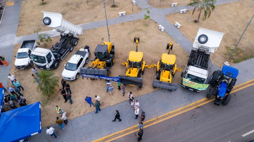 Os equipamentos — dois caminhões-caçamba, duas retroescavadeiras, uma pá-carregadeira, duas picapes, uma enxada rotativa e uma perfuradora — foram entregues pessoalmente pelo vice-governador Otaviano Pivetta (Republicanos), em parceria com a Assembleia Legislativa de Mato Grosso (ALMT), por meio de emendas parlamentares dos deputados estaduais Eduardo Botelho (União Brasil), Fábio Tardin (Fabinho) (PSB) e Júlio Campos (União Brasil).