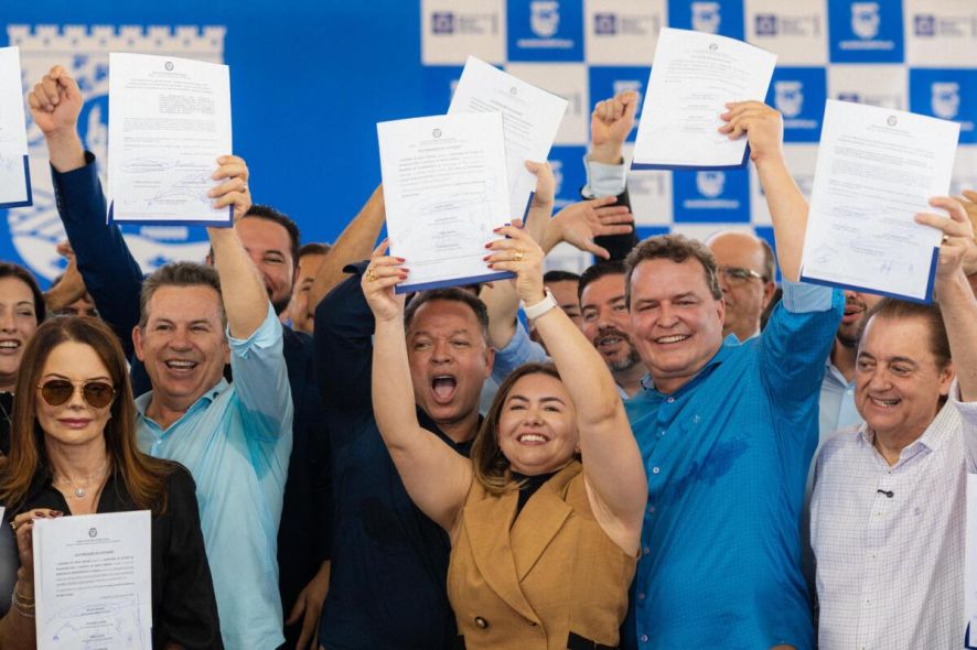 Ao lado do governador Mauro Mendes (UB), do prefeito Cláudio Ferreira (PL) e da primeira-dama Alessandra Ferreira (Podemos), o parlamentar participou da assinatura de 15 atos que somam investimentos históricos para a infraestrutura, educação e social do município.
