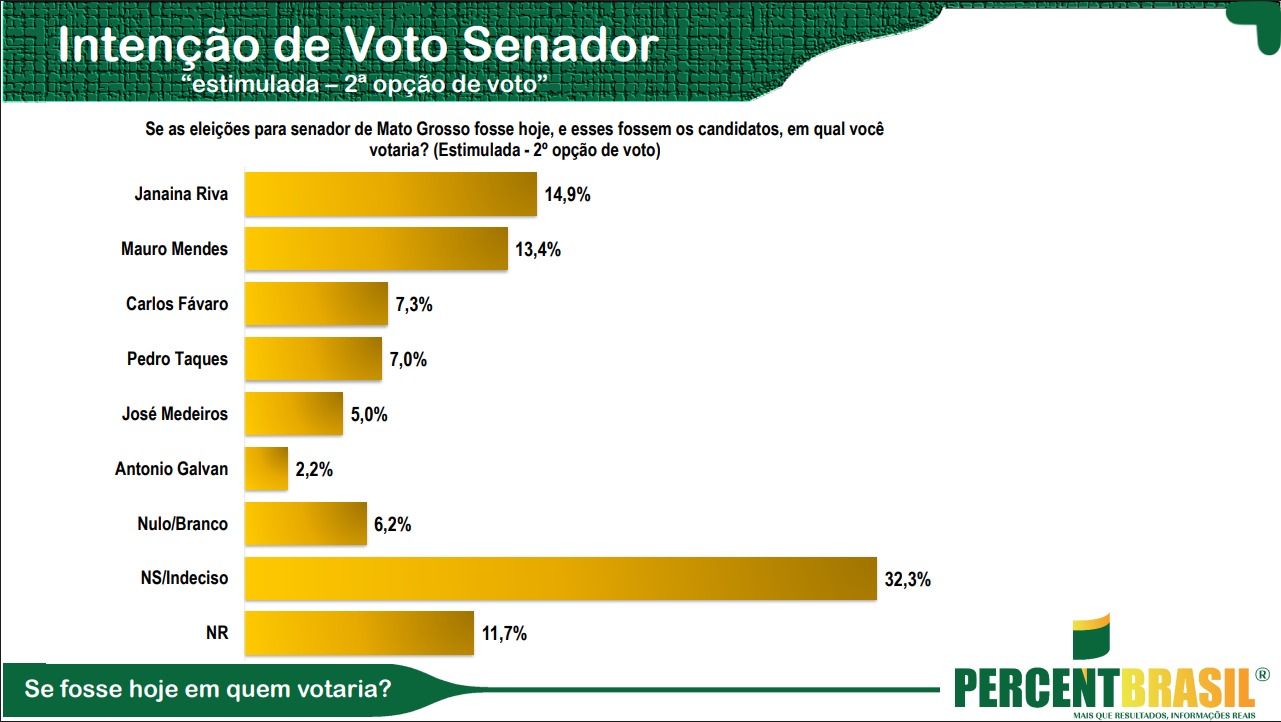 Os números se referem ao primeiro voto dos entrevistados. Nesta eleição, os mato-grossenses vão votar em dois senadores.