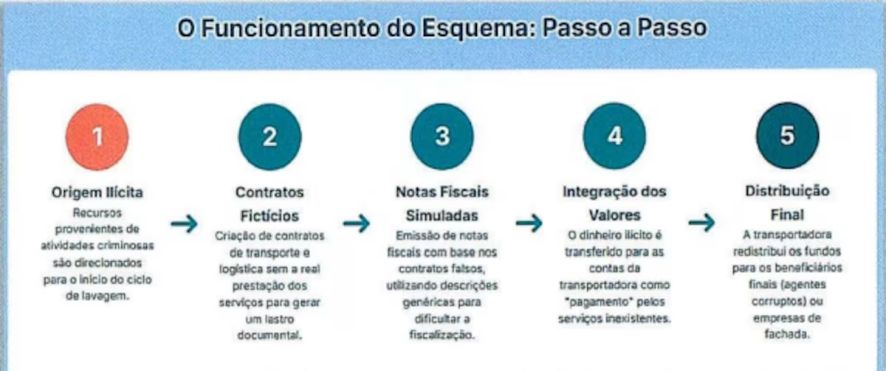 “Nessa sistemática, pessoas físicas ou jurídicas vinculadas ao núcleo pagador e ou a estruturas de fachada emitem boletos aparentemente regulares, que são quitados com recursos de origem suspeita, frequentemente em espécie ou por transferências entre contas controladas pelo mesmo grupo, de modo a conferir aparência de licitude às entradas e saídas financeiras”, argumenta a investigação.