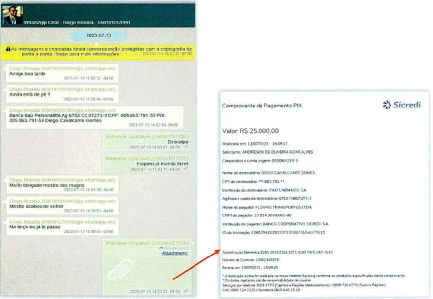 “Desculpa. Esqueci. Já mando fazer”, respondeu Andreson, prestes a enviar R$ 25 mil para a conta de Diego.