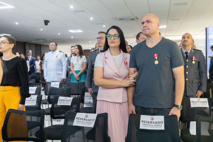 O prefeito de Cuiabá, Abilio Brunini, e a primeira-dama e vereadora Samantha Íris foram homenageados na manhã desta segunda-feira (1º) com a Medalha Imperador Dom Pedro II, a mais alta honraria concedida pelo Corpo de Bombeiros Militar de Mato Grosso (CBMMT).