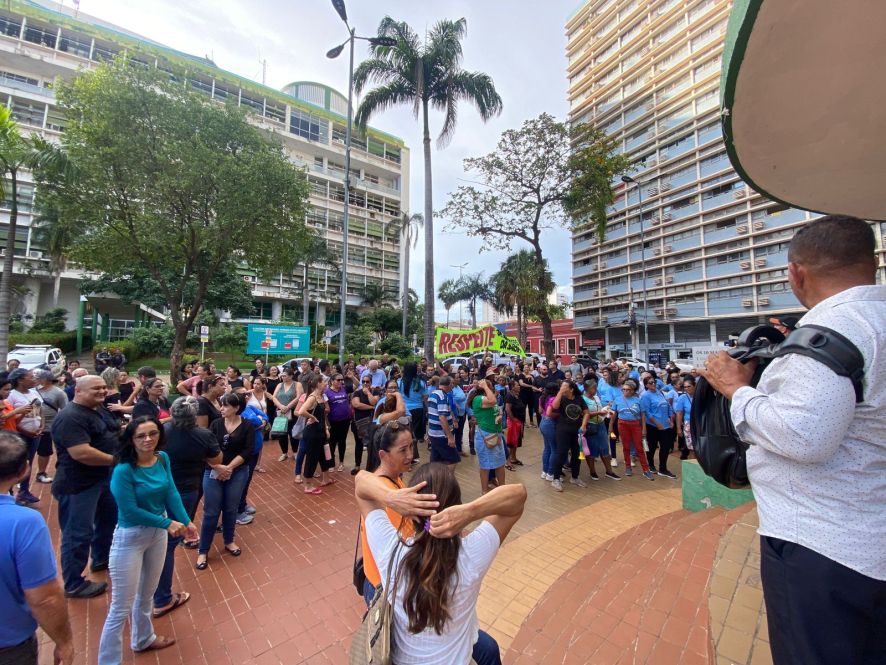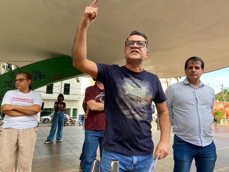 Durante o protesto, servidores da Enfermagem informaram que devem parar os serviços na sexta-feira (5) caso o benefício não seja pago.