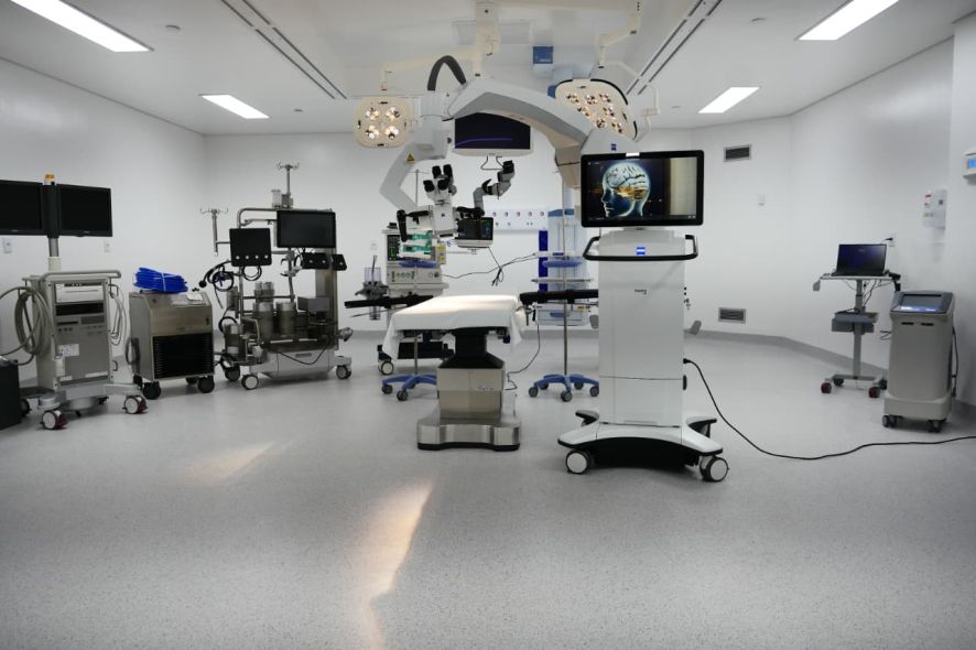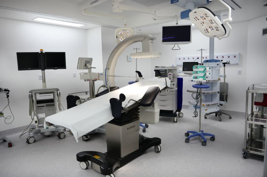 A estrutura hospitalar também dispõe de dez salas cirúrgicas, preparadas inclusive para a realização de cirurgias robóticas, além de duas salas de hemodinâmica voltadas a procedimentos minimamente invasivos, como cateterismo cardíaco e angioplastia.