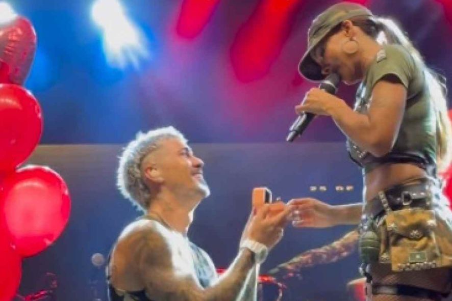 Biel, de 28 anos, surpreendeu Tays Reis, de 30, com um pedido de casamento durante o ensaio do Bloco Metralhadora da cantora, no Centro de Tradições Nordestinas, em São Paulo, neste sábado (25).