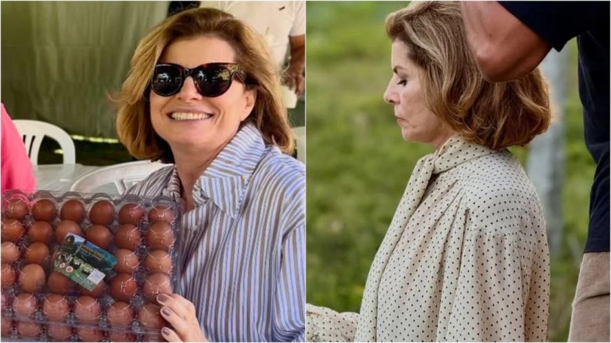 No meio do set de gravação, Debora ganhou caixas de ovos caipiras que ela e Guilherme Magon, Leonardo Roitman na trama, ganharam.