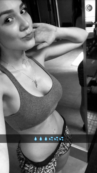 Bruna Santana, irmã do sertanejo Luan Santana, está cada dia mais com o corpo definido. Ela publicou uma imagem em sua página no Snapchat em que, usando apenas um top e shortinho, mostrou a barriga bem sequinha. Para completar o charme da foto, Bruna fez biquinho para o clique. Linda!