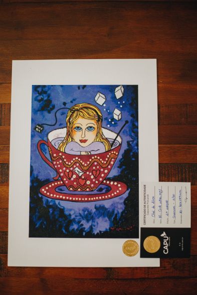 As gravuras são produzidas em tamanho 29,7x42cm (contemplando a margem, como mostram as imagens), em papel especial com Ph neutro e alta gramatura, numeradas e com tiragem limitada. São enviadas enroladas (sem moldura) e vão com certificado de autenticidade.