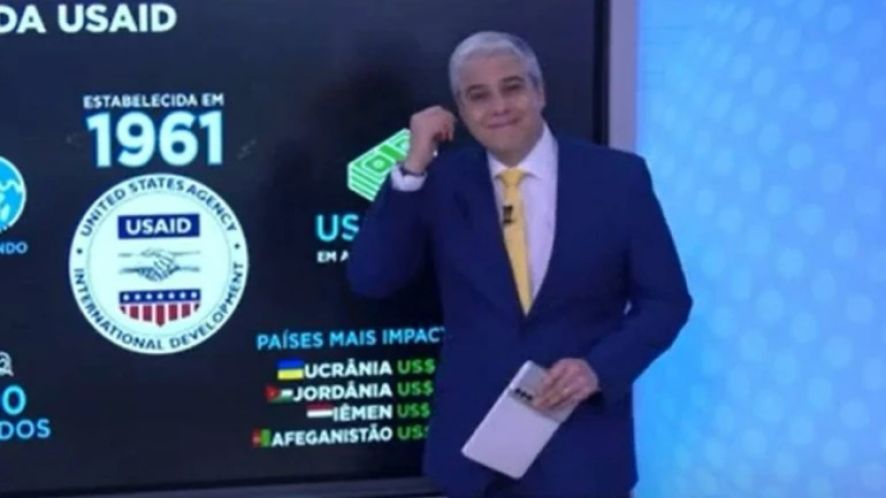 Um vídeo, divulgado no X, mostra o momento em que o jornalista analisava a proposta de Elon Musk de fechar a Usaid (agência norte-americana para o desenvolvimento internacional), quando uma parte do teto caiu e começou um barulho ao fundo.