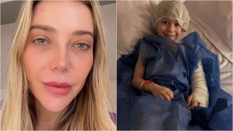 Ela contou que o pequeno sofreu uma fratura no braço após uma queda na escola e teve de ser submetido a cirurgia.