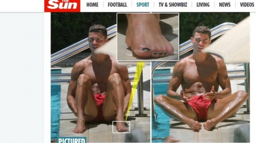Ainda curtindo férias nos Estados Unidos, o jogador foi flagrado, em uma piscina de Miami, com as unhas do pé pintadas de preto.