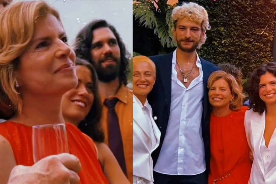 "O casamento mais lindo, amoroso, emocionante, alegre e musical. Júlia Anquier e Maria Beraldo, meus amores", escreveu ela na legenda de uma das publicações, em que aparece elegante em um vestido laranja.