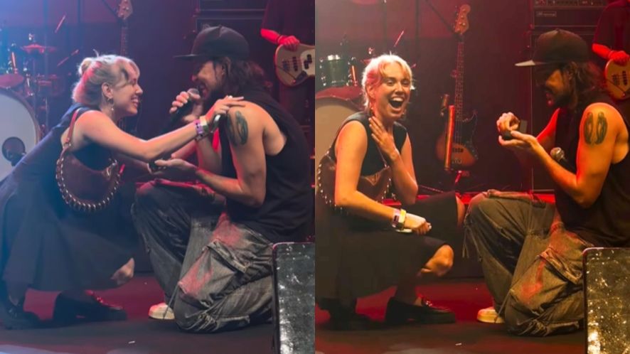 Nas imagens, é possível ver o rapper se ajoelhando diante da jovem e fazendo a proposta.