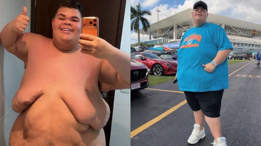 Na publicação, ele exibiu uma montagem comparando o passado e o presente e revelou que atualmente pesa 230 kg.