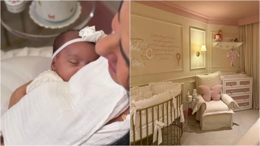 Graciele Lacerda, 44 anos, exibiu orgulhosa detalhes do quarto de sua filha, Clara, fruto de seu relacionamento com o sertanejo Zezé Di Camargo, 62, que chegou ao mundo no dia 25 dezembro do ano passado, fazendo a influenciadora realizar o sonho da maternidade.