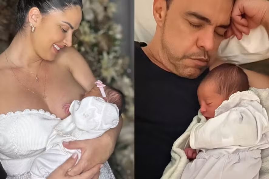 Filha recém-nascida de Graciele Lacerda e do cantor sertanejo Zezé Di Camargo, a bebê recentemente foi clicada enquanto cochilava ao lado do paizão coruja dela.