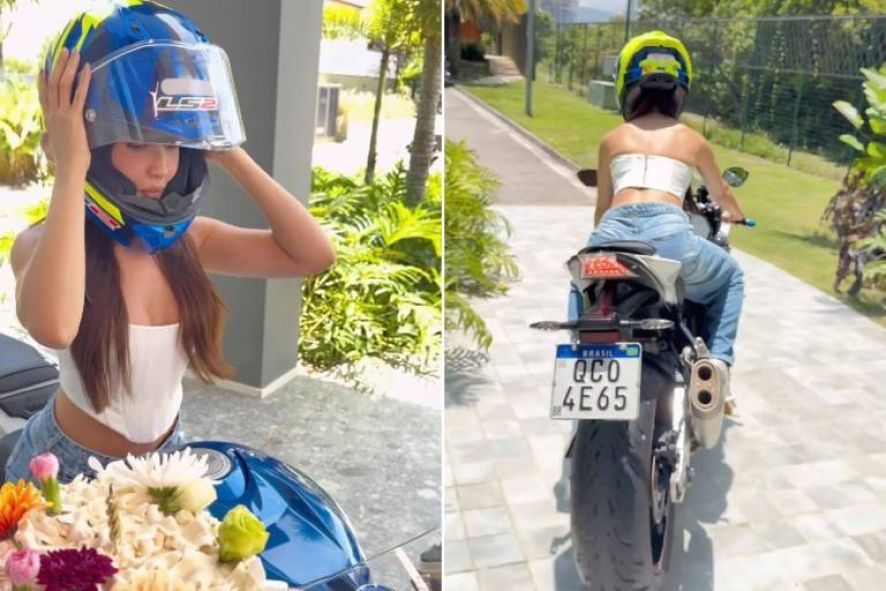 A influenciadora exibiu seu lado motoqueira nas redes sociais. Em um vídeo, ela aparece dando uma volta com o novo presente, que pode chegar a 300 km/h. "Feliz 18 anos", brincou.