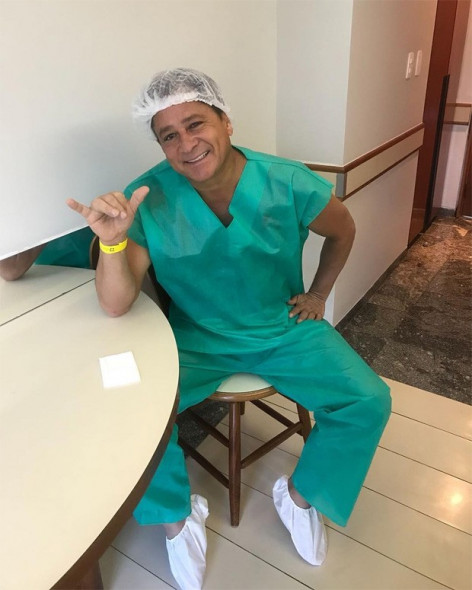 Leonardo usou o bom humor para diminuir a tensão para fazer uma cirurgia nesta terça-feira (21). O cantor de 55 anos publicou uma foto usando um roupa de hospital em suas redes sociais para tranquilizar os fãs.