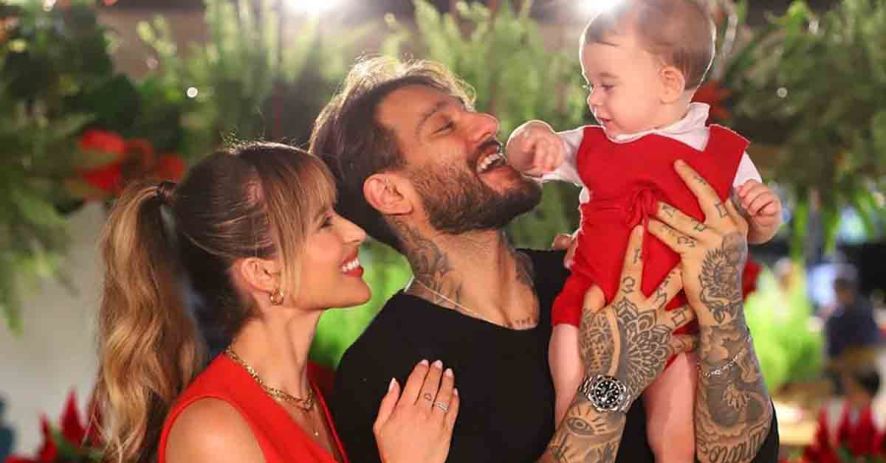 “Vou tentar ser breve porque dói demais escrever cada uma dessas linhas. Conheci a Lorena em um camarim em 2013. Foi amor à primeira vista. Toda nossa estrada juntos rendeu uma linda história e um filho lindo”, começou o cantor.