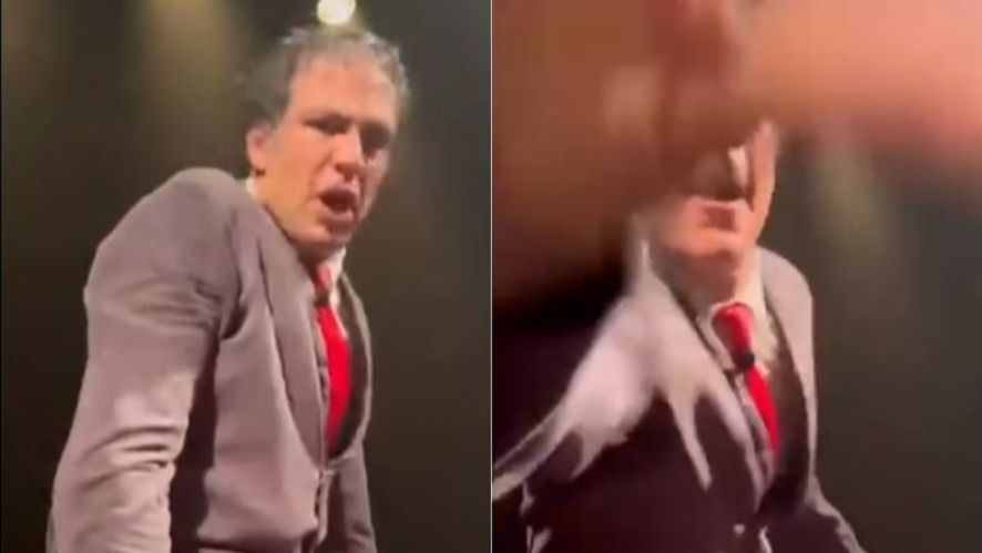 O vídeo em que Mateus Solano dá um tapa no celular de uma pessoa que estava na primeira fila na plateia viralizou nas redes sociais.