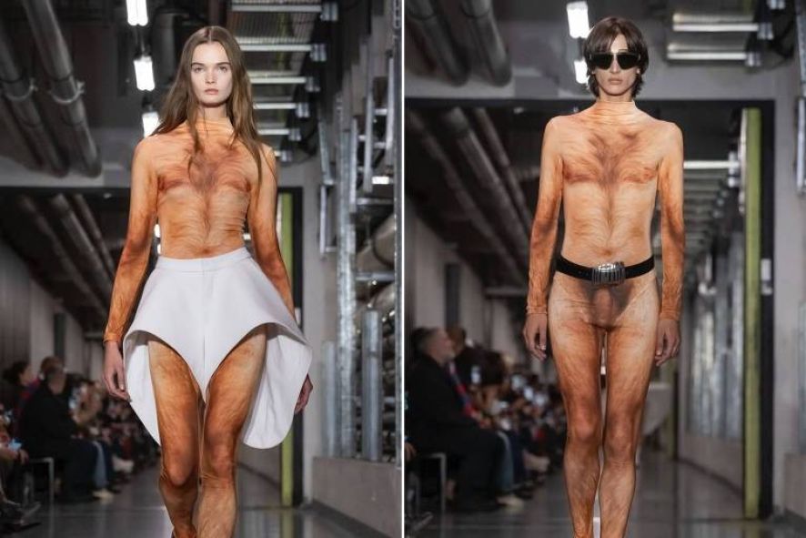 Isso porque o holandês Duran Lantink fez jus à tradição de provocação e ousadia da marca —e de seu próprio portfólio— e colocou modelos com uma segunda pele que imitava corpos masculinos peludos na passarela.