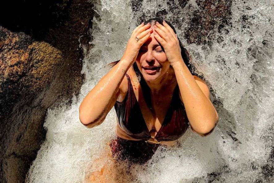 No sábado (31), a atriz compartilhou nas redes sociais registros de um banho de cachoeira e resumiu o momento com poucas palavras: