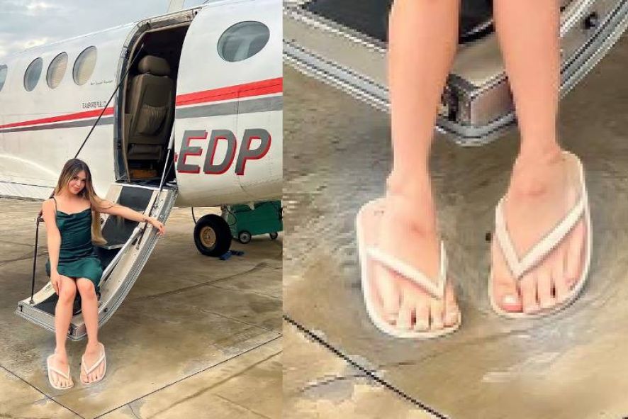 Na imagem publicada em seu perfil no Instagram, a artista mostra sua nova conquista, um jatinho particular, mas o tamanho de seus pés chamou a atenção dos fãs.