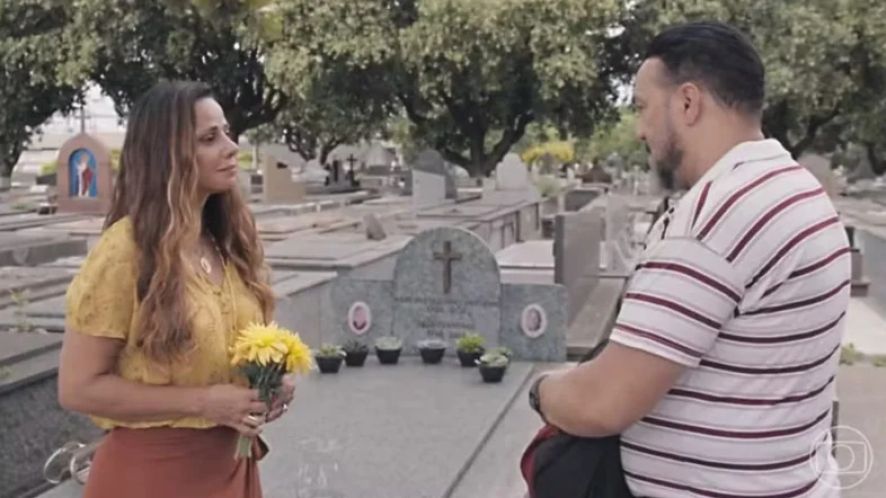 O encontro de Belo e Viviane Araujo finalmente aconteceu na cena em que Consuelo e Misael ficaram frente a frente em um cemitério do Rio de Janeiro, onde os pais dele estão enterrados, e fizeram um breve acerto de contas após 22 anos do término do relacionamento.