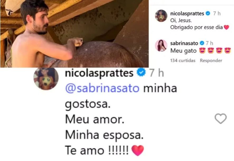 Nicolas, por sua vez, respondeu: “Minha gostosa. Meu amor. Minha esposa. Te amo!”.