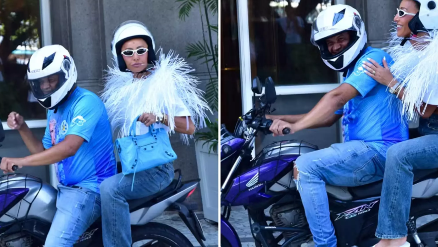 Sabrina Sato chamou atenção ao surgir na garupa de uma moto a caminho da apuração das escolas de samba do Rio de Janeiro, realizada nesta quarta-feira (18). Rainha de bateria da Vila Isabel, a apresentadora deixou o Copacabana Palace, onde esteve hospedada por algumas horas, e pegou carona com um integrante da escola para chegar ao local do anúncio das notas.