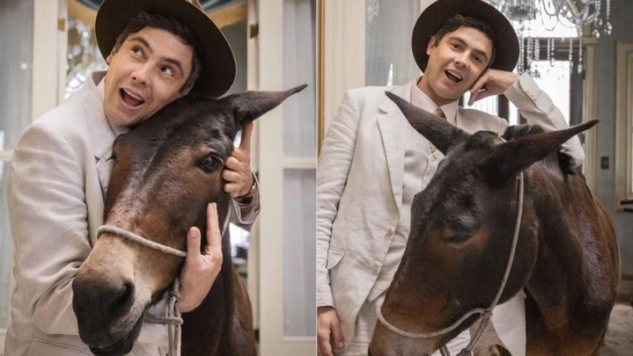 O ator Sergio Guizé, de 45 anos, que interpreta o personagem Candinho na novela Êta Mundo Melhor!, contou que fez amizade com o burro Policarpo — que fora da ficção é uma jumenta chamada Juliana.