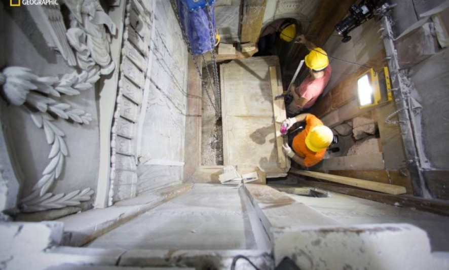 A câmara agora exposta estava selada desde 1555, segundo estudos anteriores. De acordo com a revista "National Geographic", a operação para remover a placa de mármore integra um esforço para se alcançar a superfície original de pedra onde o corpo de Jesus teria sido deixado.