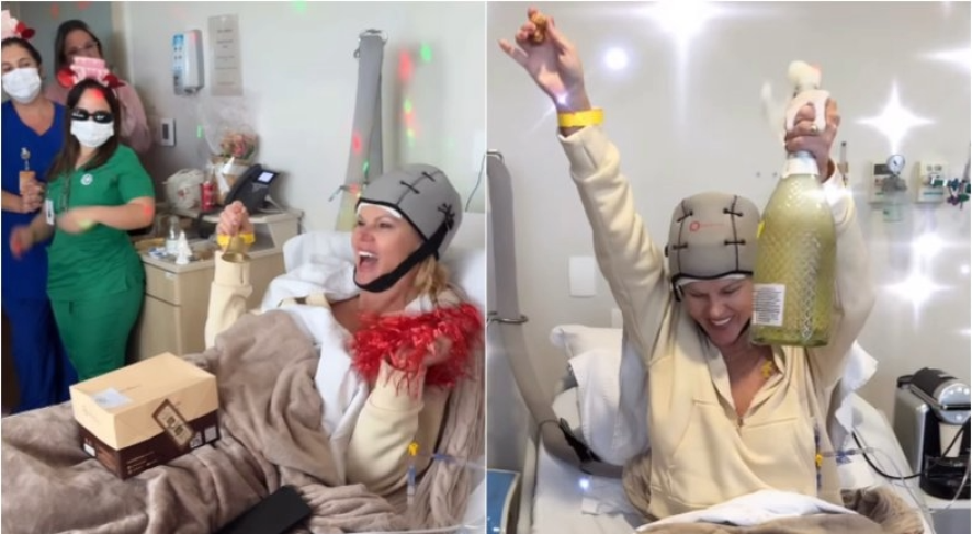 “Hoje encerro um ciclo: minha última quimioterapia. Com fé, amor e gratidão, celebro também o nascimento do Instituto Helloo Vida — uma missão que transforma dor em cuidado e esperança. E sim, até a champanhe está aqui, mesmo sem ser bebido… porque a vida merece ser brindada. Gratidão a Deus, à minha família e a todos que seguraram minha mão”, escreveu ela na legenda.