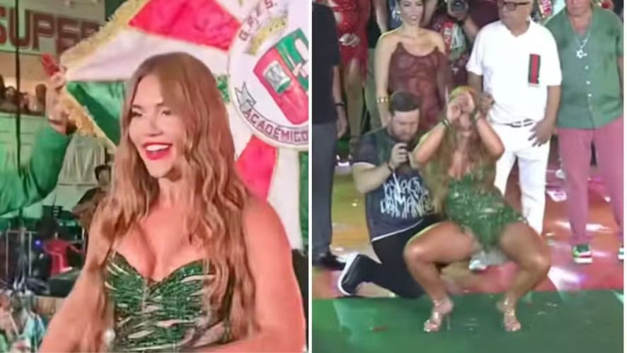 A influenciadora digital esclareceu que o momento em que agacha durante a dança foi uma instrução de Luciene Santinha, 41, líder das passistas da Grande Rio.