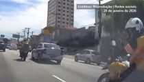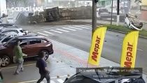 Carreta desgovernada provoca engavetamento com 8 veículos e deixa feridos em Santa Catarina; vídeo